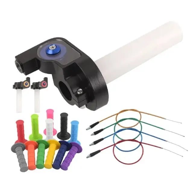 Installing the throttle is also really easy, just loosen the hex bolts on the quick throttle, and slide the new throttle stick onto your rod. After this, tighten the hex bolts so that the throttle can’t move. After this, loosen the plexiglass on the throttle stick with a Phillips screwdriver, and lift off the roller with a bearing. Then you slide the cable into the cable hole in the stick. When the cable is in the quick throttle stick, put the roller with a bearing back so that the cable runs through it. Then you install the plexiglass back, and you will be happy with the successful installation and a high-quality throttle stick, which was also really affordable! Then just ride! Lightweight bearing-mounted quick throttle, with an aluminum frame. The cable does not rub against the throttle body, so the cable will not break on its own. The throttle fits an M10 adjustment screw, as well as a universal throttle cable. The throttle fits a 22mm handlebar ends. Also fatbar.