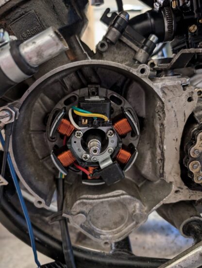 Vauhtipyörän – Staattorin – Pohjalevyn – CDI – Tulpanjohto – Tulpanhattu – Jännityssäädin.