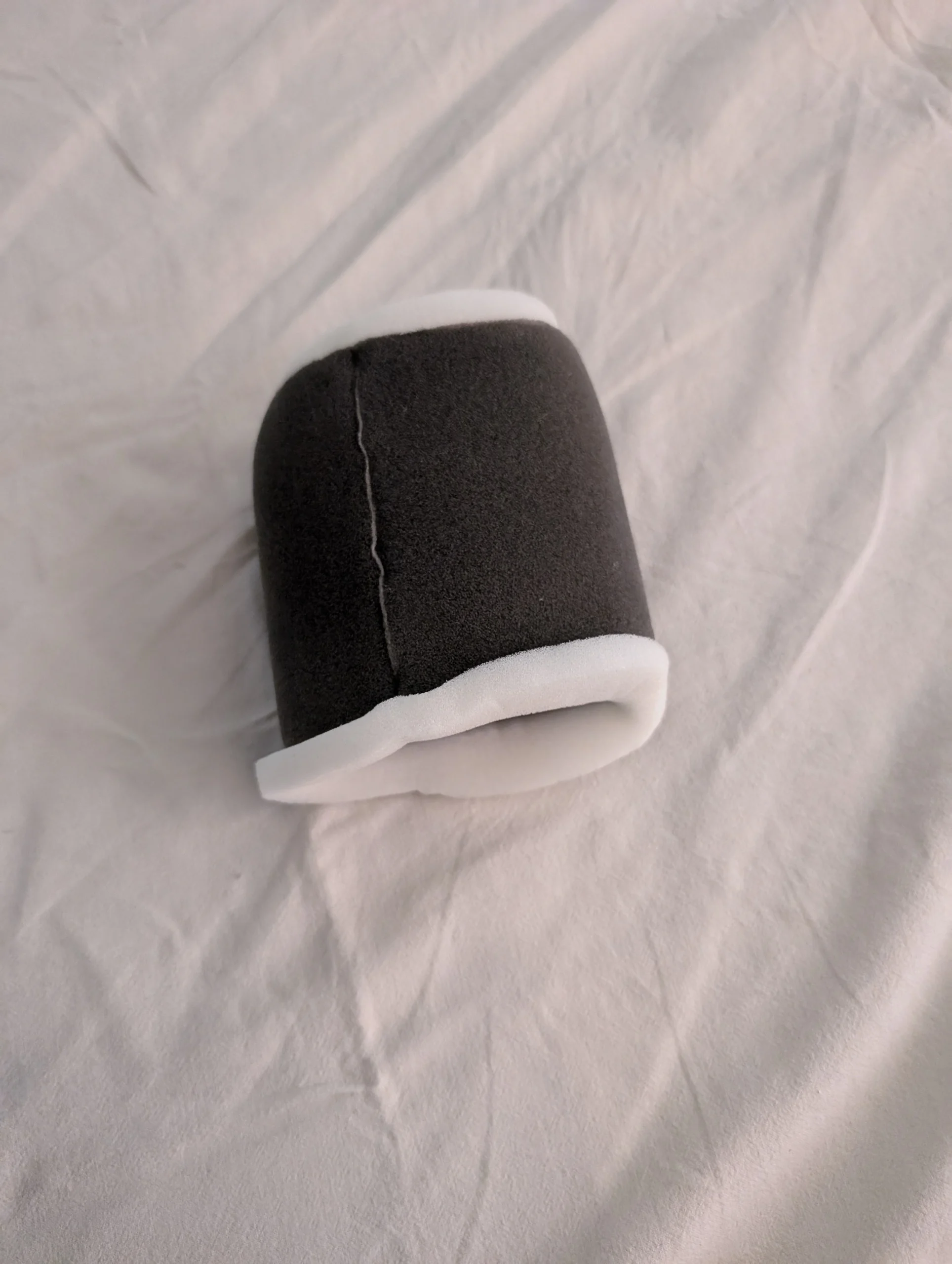 Yleismallinen vaahtomuovinen ilmanpuhdistin, kiinnitetään klemmarilla tai nippusiteellä.